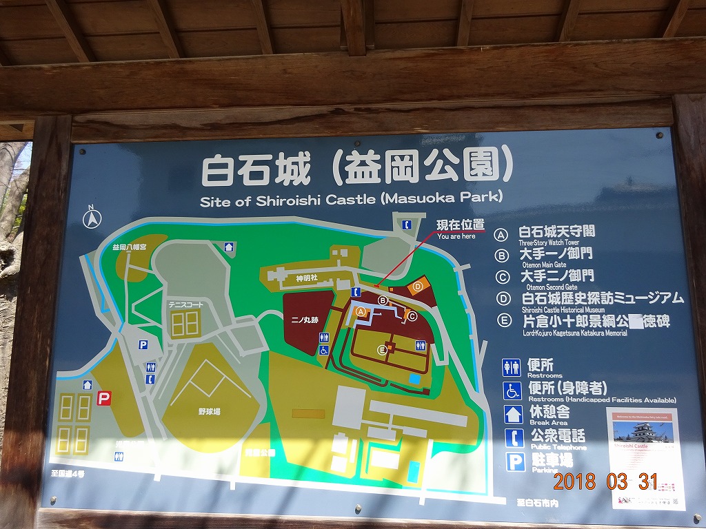 ○平成30年3月31日は「秋保温泉ホテル瑞鳳で筆頭事務員勤続30周年感謝会開催」の続きで春季事務所旅行として秋保温泉ホテル瑞鳳を午前10時にチェックアウト後、事務所旅行のいつものメンバーで春季事務所旅行として、宮城県は南方の白石市に行き、白石城・常林寺を見学し、その後蔵王町たまご舎等を訪れ、「ゆと森倶楽部」に宿泊しました。 ○ゆと森倶楽部は「ゆと森倶楽部滞在中-オールインクルーシブ等魅力いっぱいでした」で紹介していますが、私が気に入って事務所スタッフを誘いました。 以下、白石城からゆと森倶楽部までの写真です。 1.伊達政宗家臣片倉小十郎の居城であった白石城跡に向かいます ![]() 2.天守閣は平成になって再建されたものでした ![]() 3.途中、立派な面構えの秋田犬に遭遇、本丸御殿跡に入ります ![]() 4.片倉小十郎影綱公領德碑、300円の入場料のところ、身体障害手帳を見せて無償で天守閣に上りました ![]() 5.天守閣内部、日本を代表する歴史的名城と認定されています。仙台青葉城にも天守閣があればと羨ましく思いました。青葉城には天守閣は作られなかったそうですが。 ![]() 6.天守閣からの眺め、白石市内が一望できます ![]() 7.桜前線に先駆けて宮城県内で最も早く開花する常林寺エドヒガンザクラ見物 ![]() 8.境内にはほぼ満開の綺麗なサクラがたくさん咲き誇っていました ![]() 9.途中蔵王たまご舎に立ち寄り、ゆと森倶楽部では、チェックインと同時にビール飲み放題を満喫 ![]() 以上:644文字