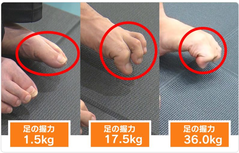 ○令和7年3月13日(木)午後7時27分から放映されたNHK「あしたが変わるトリセツショー」の「「改訂版・足」のトリセツ」を観て、足指握力の重要性を再認識しました。足指の重要性については、「今井一彰医師著”足腰が20歳若返る足指のばし”足指の重要性」や「足指の重要性認識-足指でのグー・チョキ・パーの仕方備忘録」等で紹介し、毎日早朝ストレッチ運動に足指の運動も取り入れた時期がありました。しかし、いつの間にか、忘れて、全く足指について意識しなくなっていたからです。 ○それが「「改訂版・足」のトリセツ」では、足指の特に握力の重要性が盛んに強調されており、認識を新たにしました。常に砂浜を走っているサーファーの方々が足指握力が大変強くなっていることが大変参考になりました。 ○そのトリセツショーのキャッチフレーズは、 超重要健康トピック2本立て▼①転倒防ぐ“足の握力”大注目▼「つまずきにくくなった」と体験者歓喜!改訂版トリセツ流足指体操で楽しく足の力UP▼②加齢による衰え=フレイル対策の決定版エクササイズを開発▼ぜひ録画してテレビの前で体験を!▼足腰が楽に!ふらつき改善!歩行が速く!2か月試した高齢者の変化に本人も専門家も驚き▼“年のせい”だとあきらめないで!一生元気で動けるカラダを目指したい人は必見!となっています。 ○以下、備忘録です。 トリセツ01 足も体も元気でいるための大事な要素 「足の握力」 ■ 2000人測定!足の握力が大注目! 足の握力とは、足指を曲げたときに発揮する力のこと。およそ2000人の足の握力調査の結果、男性の標準値は15kg前後/女性の標準値は10kg前後であることが判明しています。 ■ 足の握力が強いとうれしいことが! 足の握力が強いとねんざの予防やバランス能力の向上、歩行速度の上昇などさまざまな効果を得られることが最新研究で分かってきました。 ■足の握力と転倒の意外な関係! 健康な高齢者を1年間追跡調査した研究によると、転倒した人は、しなかった人に比べて平均20%足の握力が弱いことが判明しています。また別の研究では、足指のトレーニングをした高齢者は、転倒リスクが有意に減少したという結果も出ており、足の握力を鍛えることが転倒予防にも効果があることが分かってきています。 足の握力をざっくり知るためのポイント ■足指の可動性を見てみよう! 足の握力の強さには、体重や土踏まずの高さなどが関連していることが分かっていますが、最も強く影響を与えている要素が、「足指の可動性」です。実際に、男性3名の足の握力と足指の可動性を比較したものが下の画像です。 ![]() 足の握力に大きな個人差が生まれる理由には、幼少期からの運動習慣やハイヒールや革靴といった硬い靴を履くなど足指を使わない環境で生活していることなどが挙げられます。 トリセツ02 足の握力を鍛える改訂版!グーパー体操 ![]() 以上:1,184文字