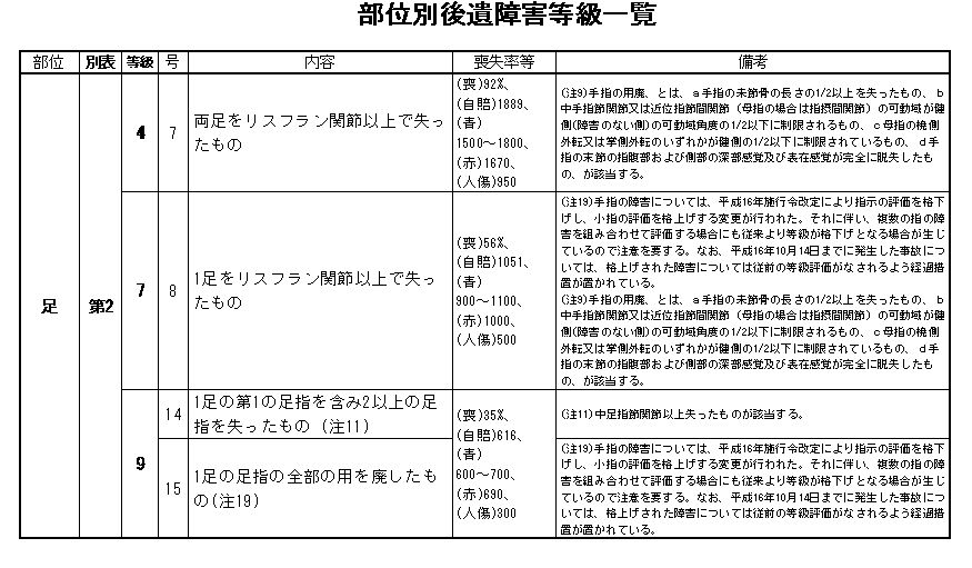> 桐ファイル一覧表印刷での後遺障害等級一覧紹介3