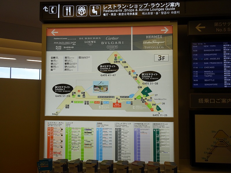 4.出発ロビー内掲示板にはユナイテッド航空の表示はありませんが、改札カウンター上の掲示板には当便はユナイテッド航空との共同運行との表示が見えます