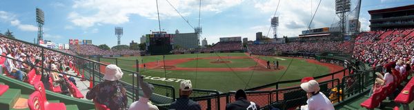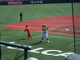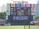 ○平成18年9月2日(土)午後1時からフルキャストスタジアム宮城で楽天-ソフトバンク戦を観戦してきました。平成18年7月8日以来約2ヶ月ぶりで、今回も、ある顧問先からのご招待でバックネット裏指定席で観戦しました。 ○上記パノラマ写真でお判りのように大変天気が良く、秋とは言え日差しが強く汗だくになっての観戦でした。強い日差しに耐えられず途中で楽天グッズの店に行って帽子とうちわを買ってうちわで扇ぎながらの観戦になりました。 ○フルキャストスタジアム宮城での楽天戦観戦はようやく3回目で、今度こそは勝利を味わいたいと思って前回購入した応援グッズのツインバッドを持参し、楽天側攻撃の時は一生懸命叩いて応援したのですが、残念ながら結果は4:1で敗戦でした。 ○先発投手一場は、4回まではビシッとソフトバンク打線を抑えていたのですが、5回ソフトバンク4番打者松中に一発を決められて気が緩んだのか、その後に6回先頭打者にヒットを許すと連続してヒットを許しあっという間に3点を取られて降板しました。 ○流石、ソフトバンク4番打者松中は安定感があり、ここぞと言うときに決めてくれる信頼できる選手と感じました。プロ野球には全く興味が無く、ソフトバンクの松中選手は平成18年7月8日の宮城フルキャスト球場と平成18年5月28日ヤフードームで見ていましたがその実績等は全く知りませんでした。ところが、ウィキペディアで調べると、何と平成16年にはレギュラーシーズンで打撃三冠王(首位打者・打点王・本塁打王)を達成した大選手と言うことで驚き、又紊得しました。 ○楽天にも松中のような核となる打者が居ると良いのですが、4番打者フェルナンデスは安定感に欠けるようです。しかしそのフェルナンデスが最終回、ライトスタンドに目の覚めるようなライナー性ホームランを叩き込んで楽天の意地を見せてくれ、平成18年9月3日(日)の勝利に繋げてくれました。これは楽天の平成17年勝利数を上回る記念すべき勝利でした。残念ながらこちらはTV観戦でしたが。 以下、スナップです。