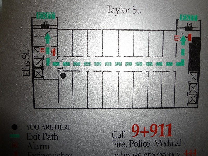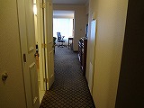 ○「平成24年事務所旅行ーほぼ無事終了」記載の通り、平成24年サンフランシスコ・ヨセミテ事務所旅行は、サンフランシスコのヒルトンホテルスクエアに5泊取り、最初の1泊目は同ホテル、その後2泊はヨセミテ泊で、残り2泊はまたヒルトンホテルスクエアでした。2,3泊目はサンフランシスコで活躍しているAさん所有ヨセミテの豪華別荘に無料宿泊でしたが、パック旅行であるためこの間もヒルトンホテルスクエアは、取り続けなければならず、私以外は2人一部屋で4部屋取っていました。 ○4泊目は、サンフランシスコに戻りましたが、2人一部屋ではきついと言うことで、一部屋200ドル強で2部屋追加し、6部屋を取り、同行7名の内1人はAさんのサンフランシスコ郊外の自宅に泊めて頂き、後の6人はヒルトンホテルスクエアで1人一部屋でゆったりしました。しかし、最終5泊目は、Aさん自宅に泊めて頂いた1人もヒルトンホテルスクエアに戻ることして、私が1人宿泊する部屋を追加しました。Aさんの口利きで380ドルのジュニアスイートを取って頂きました。 ○「平成24年事務所旅行サンフランシスコ到着」に「旅の楽しみである湯船に浸れず、身体も自由に洗えず、おまけにインターネットも使えず、更にビールでも飲もうかと冷蔵庫を開けようとするも鍵がかかって開かず、飲み物も取れません。何というホテルかと、二重三重のストレスで、二度とヒルトンホテルには泊まらないと怒りまくっています(^^;)。」と記載していましたが、その後、4泊目から部屋でのネット使用が可能になり、少し、怒りが収まって来ました。ネット中毒の私は、ネットが使えるだけでストレスが相当程度改善します(^^;)。 ○そして最終5泊目は、Aさんのお世話で広いジュニアスイートに宿泊したら、こちらは広いバスタブもあり、固定シャワーもお湯の流れ方やシャワーの向きを変えるなど可能で、勿論、部屋でネットも使え、何より、リビングとベッドルームが分かれる広々とした部屋で、更に380ドルは日本円で約3万円であり、3万円程度でこれだけの部屋を提供してくれるヒルトンホテルスクエアに対する悪印象がスッカリ除去されました(^^;)。 私が宿泊した1-2584号室(第1タワーの25階)の入口と部屋の説明図です ドアを開けて部屋に入ると右側にロッカー、左側に広いバスルームがあります