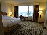 バスルーム内部、6畳位の広さでバスタブもゆったりしていますが、残念ながら固定シャワーです リビングルームです、やや大きな液晶TVもあります ![]() 隣の部屋と連結できるようです、リビングルームからの眺めも良く、執務机も立派です ![]() 広々としたベッドルーム、キングサイズダブルベッドに1人悠々と眠る最高の贅沢です ![]() 窓からの眺めも最高です
