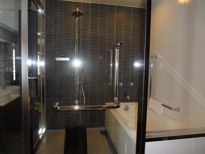 部屋の真ん中にTVが設置されています ![]() バスルームが広いのが一番気に入っています ![]() 「都心の夜景を臨むビューバスには3Wawシャワーを標準装備しております。」と説明されています ![]() トイレもジュニアスイートルームよりハイグレードです
