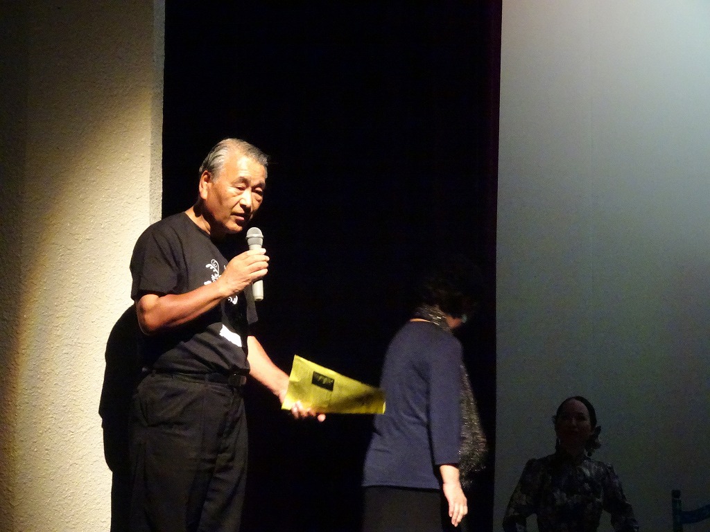 ○平成29年7月29日(土)は、岩手県フラメンコギター協会主催のおそらく第7回目となるフラメンココンサートを鑑賞してきました。「岩手フラメンコギター協会主催第6回フラメンコギターコンサート初参加」記載の通り、平成28年11月の第6回コンサートではゲスト出演したため大変緊張して望んだのですが、今回は出演はなく気楽に鑑賞してきました。今回もゲストとしてバイラオーラ(踊り)戸塚真愛(まかな)さん、フラメンコギタリストマリオ中村さん、それに北秋田市出身のカンタオーラ(フラメンコ歌手)三澤敦子さんの3人のプロが出演しており、私のような素人が出る幕がありません。 ○岩手県フラメンコギター協会は、おそらく70歳を超えている渡邉邦義さんが中心となって活動しているフラメンコ好きな方々の集まりですが、おそらく平成23(2011)年から毎年コンサートを開催し、平成29年は7回目となっています。私が鑑賞したのは、「岩手フラメンコギター協会主催第4回フラメンコギターコンサート鑑賞1」記載の通り、北上市さくらホールの小ホールで開催された第4回目が初めてでした。第5回目は都合が付かず鑑賞できませんでしたが、第6回目はゲスト出演する羽目となって恥をかいてきました。 ○岩手県フラメンコギター協会主催コンサートは、平成29年7月29日、9月2日の2回開催するとの案内状を頂きました。9月2日は事務所合宿と重なっており、7月29日の鑑賞となりましたが、会場は花巻市文化会館小ホールでした。花巻市は、ご存じ宮沢賢治氏のふるさとですが、過去に訪れた記憶はなく、花巻駅に降り立ったのは初めてでした。グーグルマップで花巻市文化会館を確認すると花巻駅から近く、歩いて5分もすれば到着すると思って、小雨の中歩いて向かいました。 ○しかし、歩けど、歩けどなかなか文化会館は現れません。途中、クリーニング店で文化会館の場所を尋ねると、まだズッと先でした。更に歩くと、宮沢賢治ゆかりの梨の木に出合い、デジカメに収めて、歩くこと数分でようやく到着しました。花巻駅からはかれこれ20分以上歩いての到着でした。後で再度グーグルマップを確認すると、私の歩いた距離は花巻駅から少なくとも1.5㎞はあり、20分は当然でした。 ○以下、当日、写真集です。 1.花巻駅前風景、わんこそばは食べませんでしたが、駅構内食堂で宮沢賢治そばを食べました ![]() 2.文化会館途中で、宮沢賢治ゆかりの梨の木に出合い、そこから数分の所に花巻市文化会館があり、フラメンココンサートの看板が立っていました ![]() 3.文化会館内部案内板、階段を上がって右側が大ホール、左側が中ホールでした、中ホールは200席の折りたたみ椅子が準備され、ほぼ満員でした ![]() 4.11名の元気なバイラオーラによるセビジャーナスでオープニング、おそらく軽く70歳を超えていると思われる方も元気に踊っていました、男性4名のギタリストも70歳前後の方々と思われますが、大変、元気です ![]() 5.渡邉邦義さんは、司会・演奏と大活躍です、いつものことながら、軽妙な語り口で会場を大いに湧かせています ![]() 6.プロのカンタオーラ三澤敦子氏、ギタリストマリオ中村氏、バイラオーラ戸塚真愛氏、流石プロ、と唸らせるパフォーマンスでした ![]() 以上:1,367文字